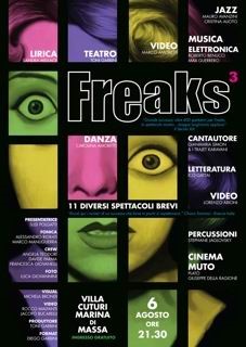 Il presagio suscita un senso di meraviglia e di stupore e può essere fasto o nefasto, generando perciò rassicurazione o spavento. Freaks - lo spettacolo mostro è come Frankenstein, gigantesco, fatto di tanti pezzi, di tradizione e di ricerca. Il termine Freaks, che ricorda il cinema (Elephant Man di Lynch, Freaks di Browning), la letteratura e il costume, è tagliato ad arte per descrivere qualcuno o qualcosa che abbia uno sguardo laterale sulla realtà, obliquo nel ridefinirne i parametri e che propongono in una forma breve e leggera decenni di esperienze di ricerca artistica.