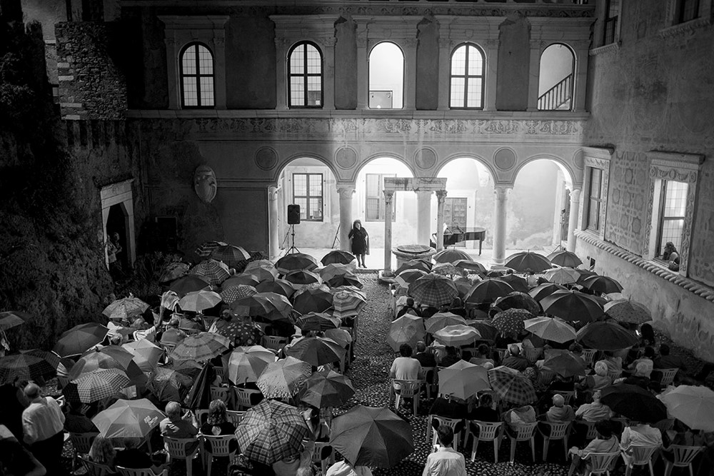 La foto di inizio recital, con gli spettatori fermi sulle loro sedie, con gli ombrelli aperti, è la migliore e la più giusta didascalia di questa 21 edizione del festival promosso dalla Provincia di Massa-Carrara e dalla Fondazione Toscana Spettacolo.